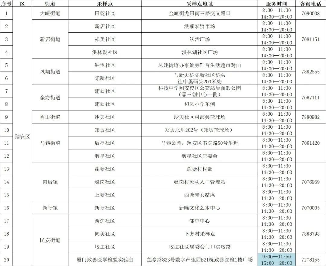 翔安区便民核酸采样点
