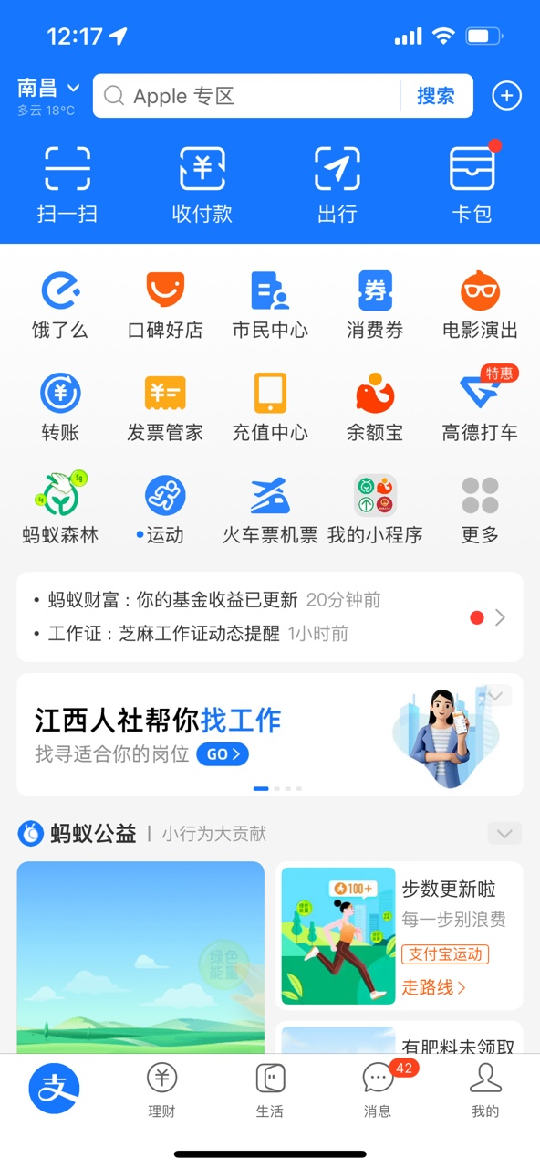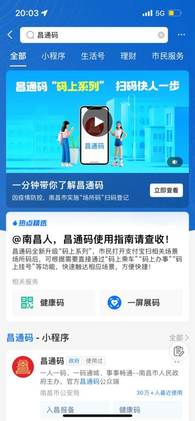 1、打开支付宝搜索昌通码,进入昌通码首页;
