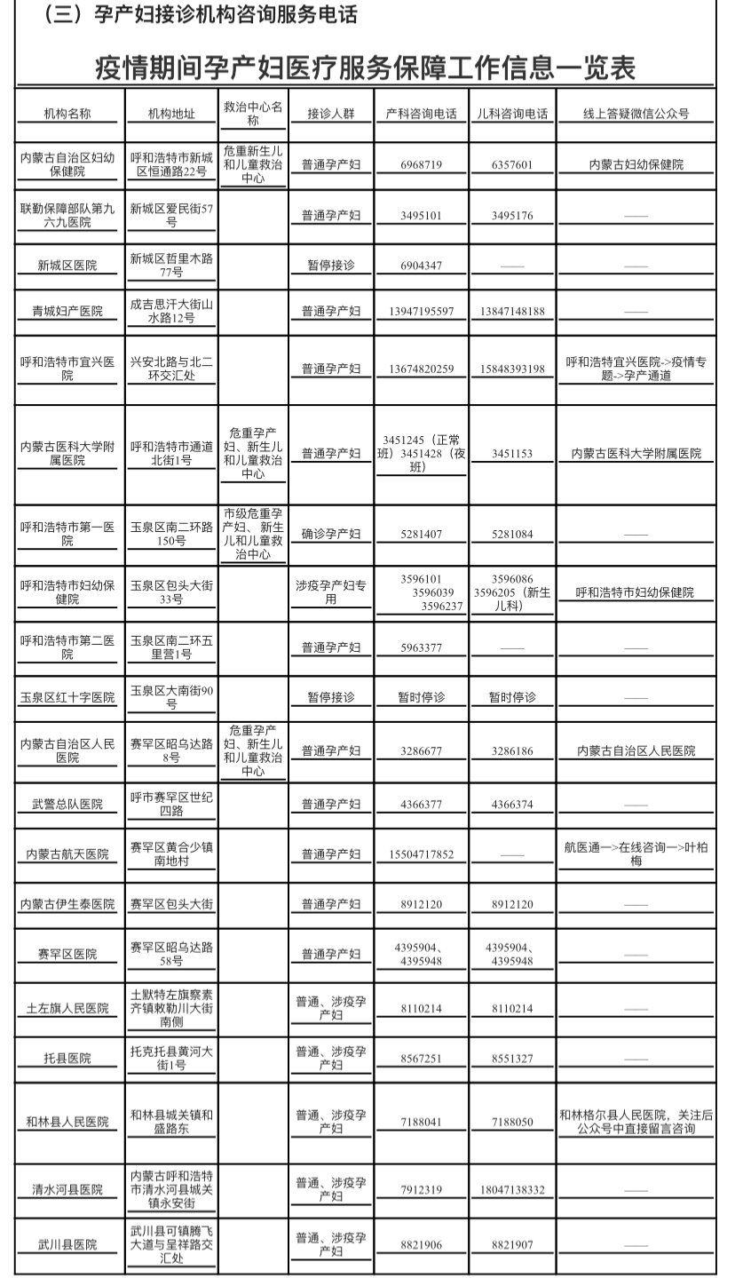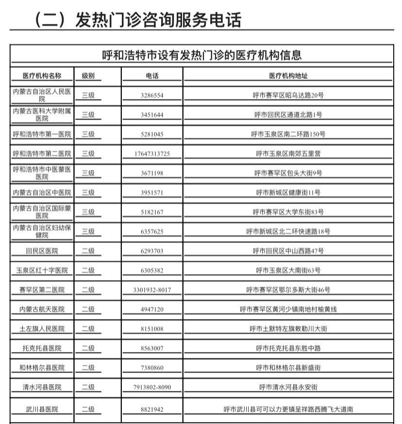 2022疫情期间呼和浩特不同人群分类就医流程公告(附电话)