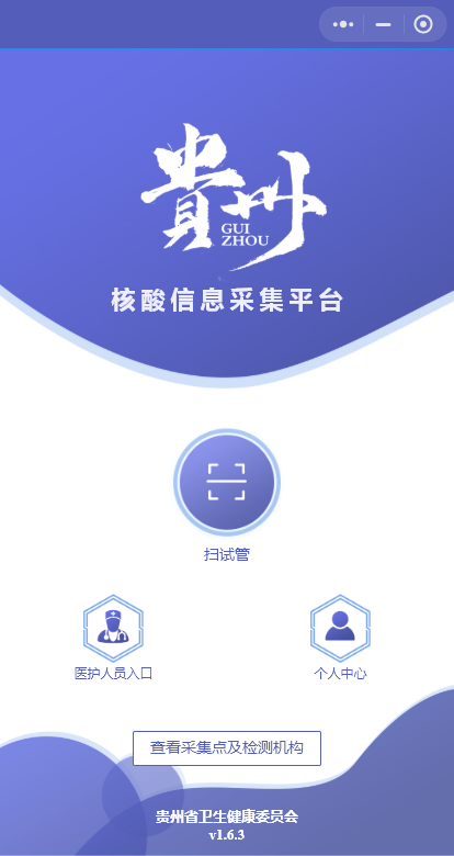 1.微信搜索并进入“贵州核酸检测”小程序