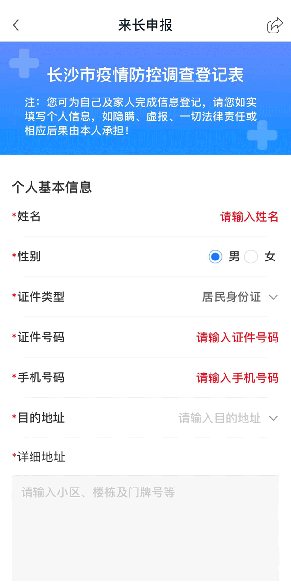 所有来(返)长人员,必须至少提前1天通过“我的长沙”APP或“我的长沙”小程序报备。主动履行个人防疫责任,配合做好疫情防控措施。对瞒报、谎报个人行程和健康状况的,将可能承担相应法律责任。
