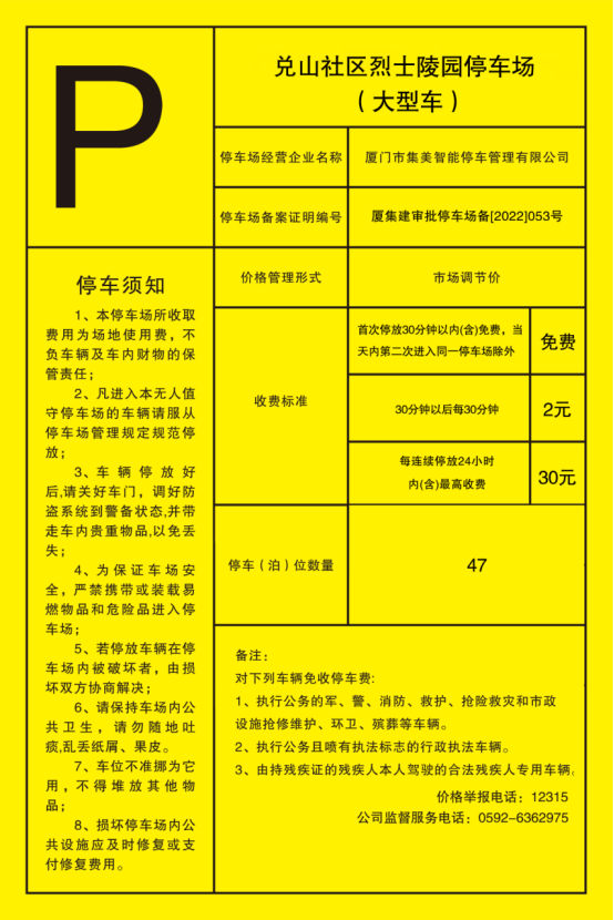 泊位数:319(此停车场由大型车和小型车两个停车场组成,其中:大型车停车场47个泊位+小型车场272泊位)
