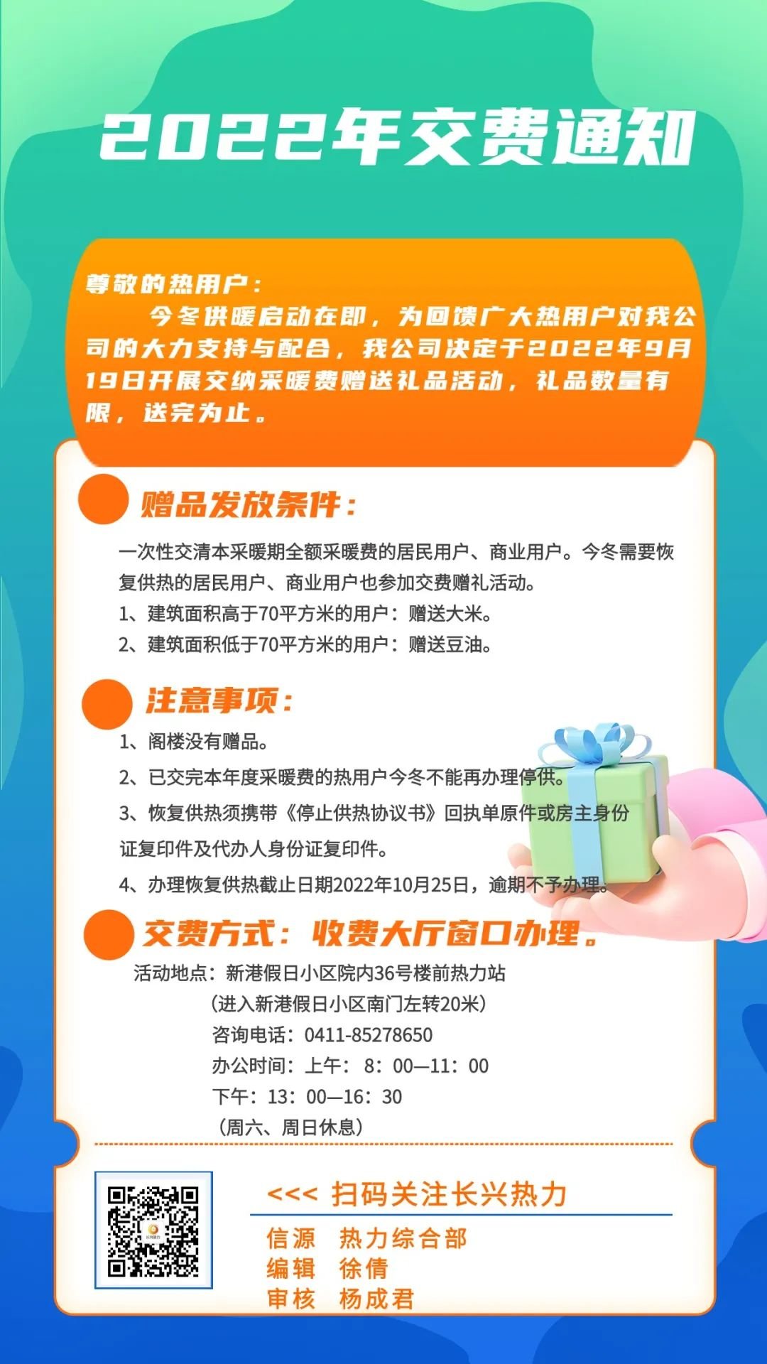 2022年大连长兴热力有限公司供暖缴费及停供通知