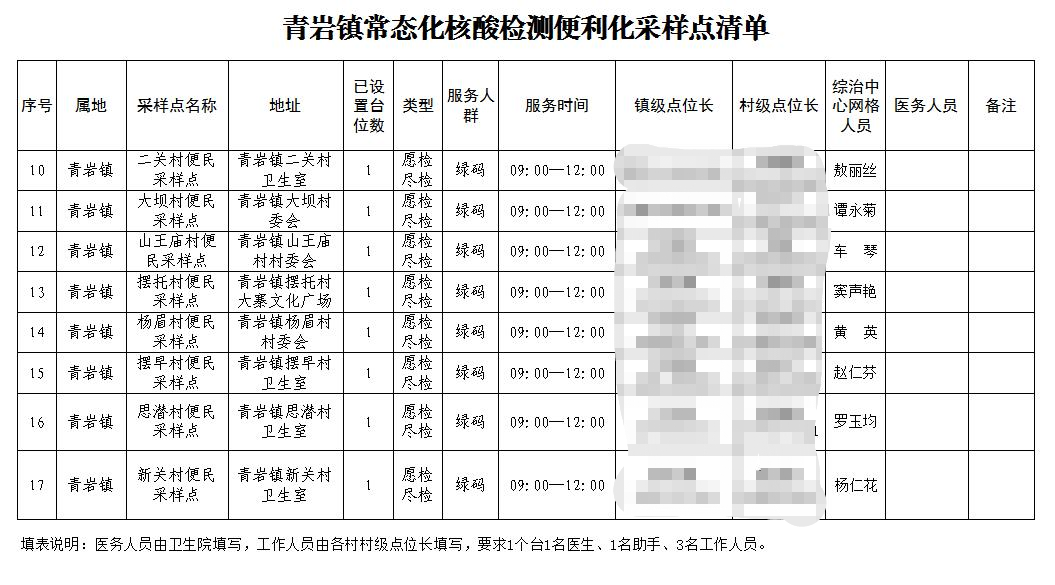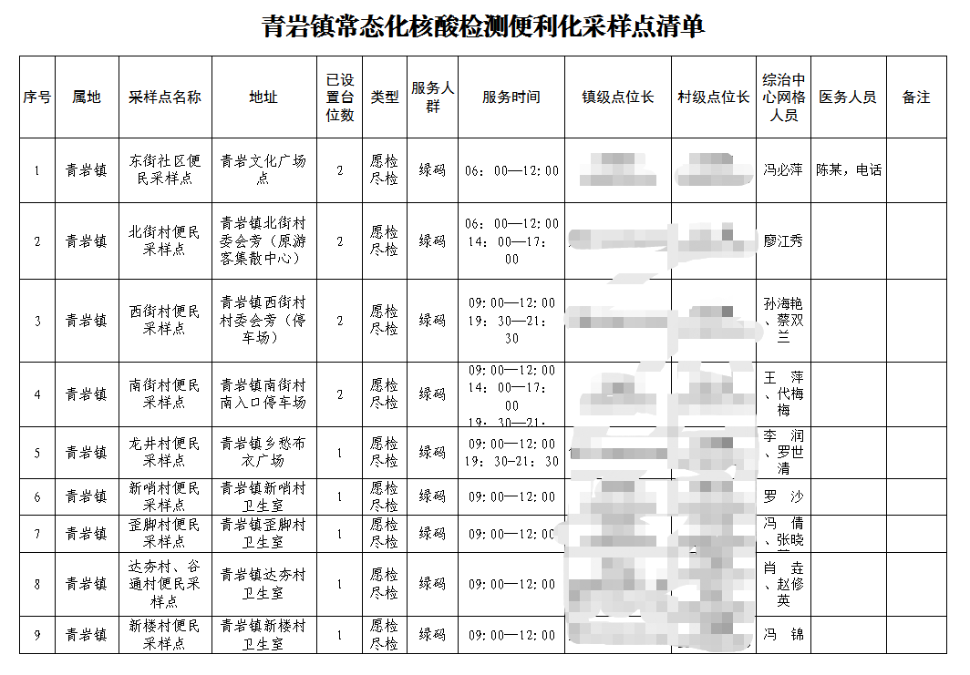 一、青岩镇常态化核酸检测便民服务采样点及开放时间