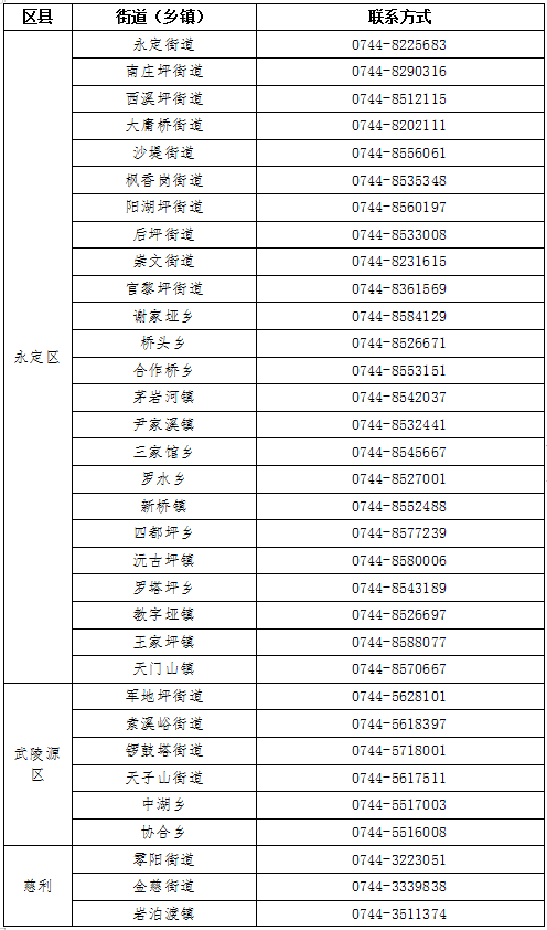 各街道(乡镇)联系电话