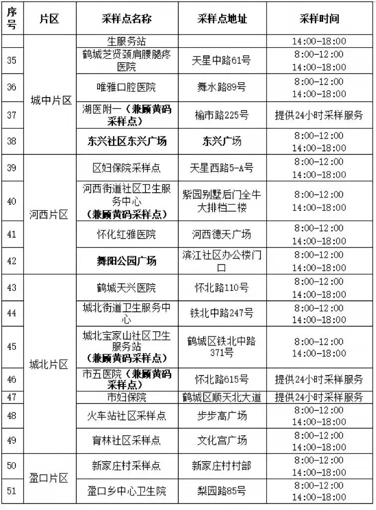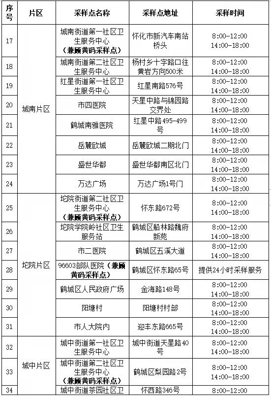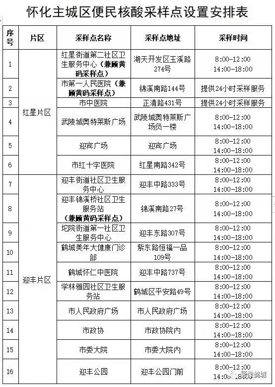 怀化主城区便民核酸采样点名单(最新)