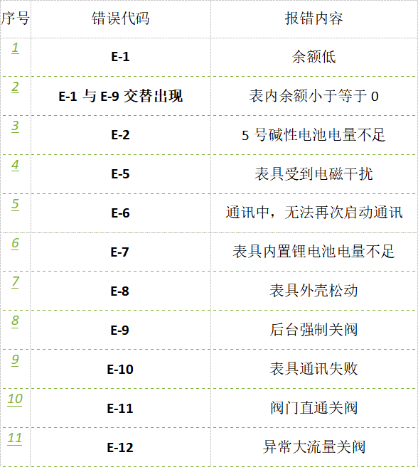物联网燃气表错误代码解析