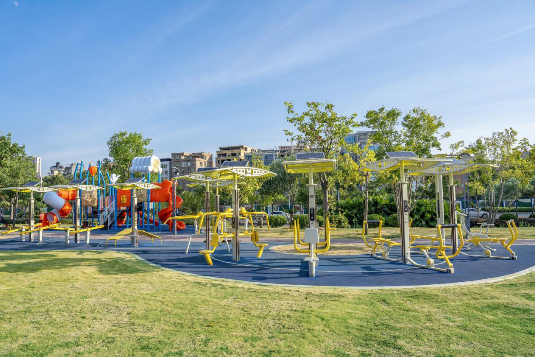 多点:选取公园中两处集中开阔节点,打造国民体质监测站、大众健身运动区、五人制足球场,以及中老年、特殊人群健身区儿童乐园等区域,涵盖各类人群的不同运动需求,在这里你可以找到适合自己的运动器材。