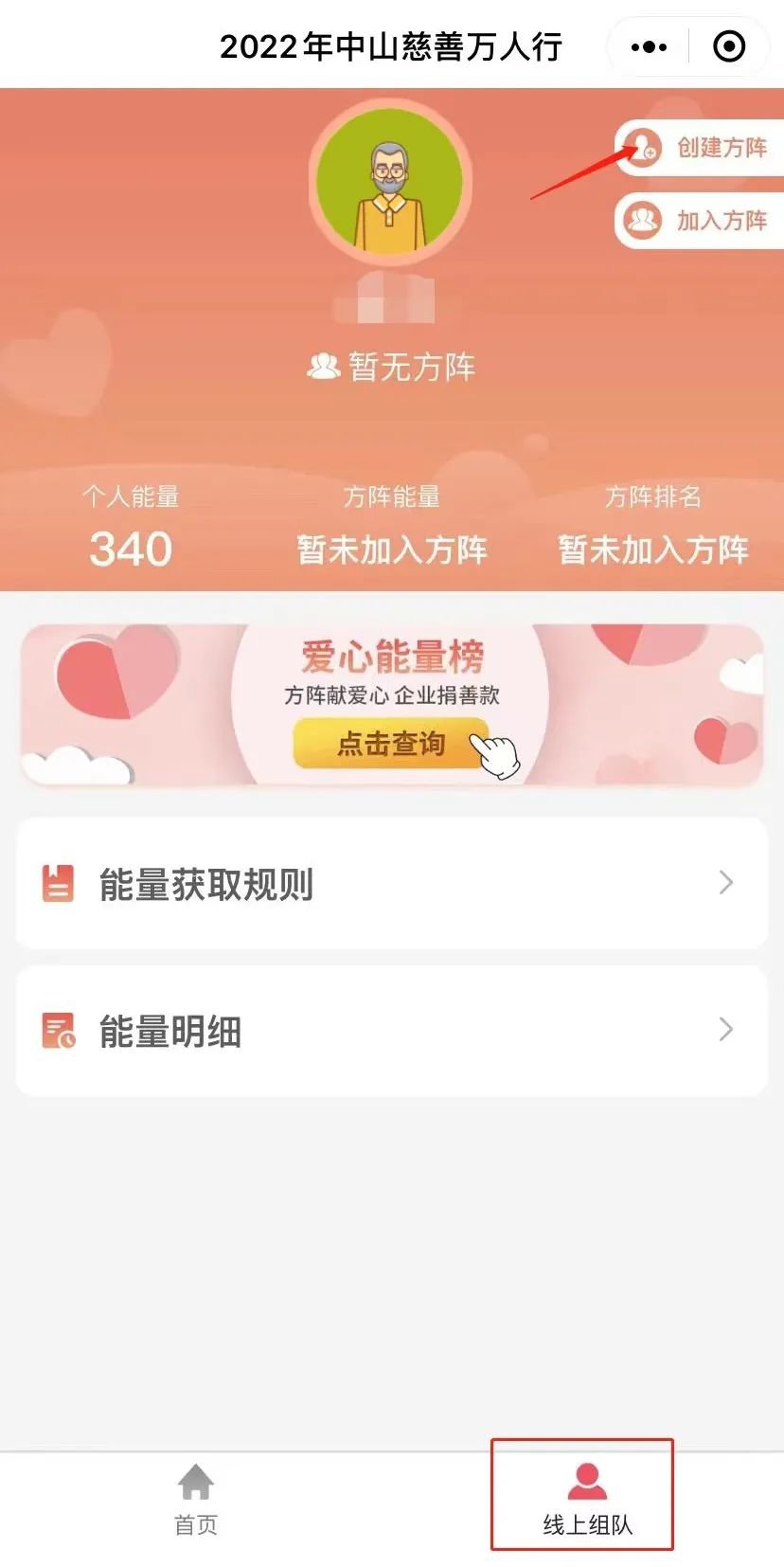 ① 点击“线上组队”选择“创建方阵”即可创建队伍;
