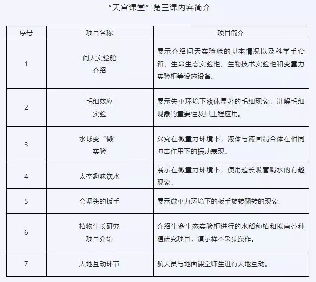 二、2022年“天宫课堂”第三课课程表(内容亮点):