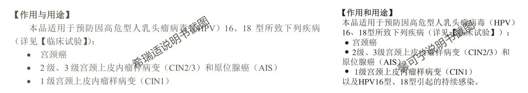 2款HPV疫苗都是被批准用于预防HPV16及18的感染所致宫颈癌以及宫颈原位癌等疾病