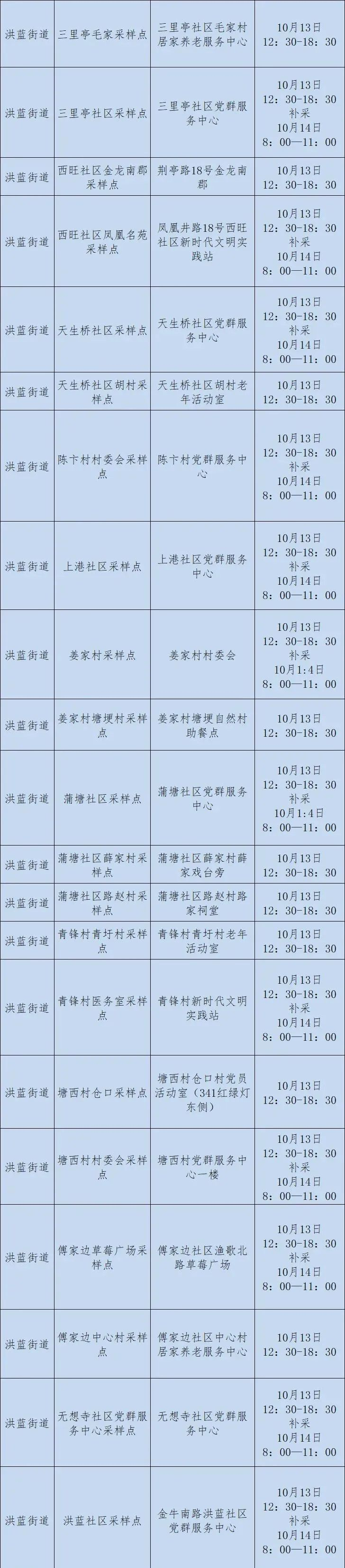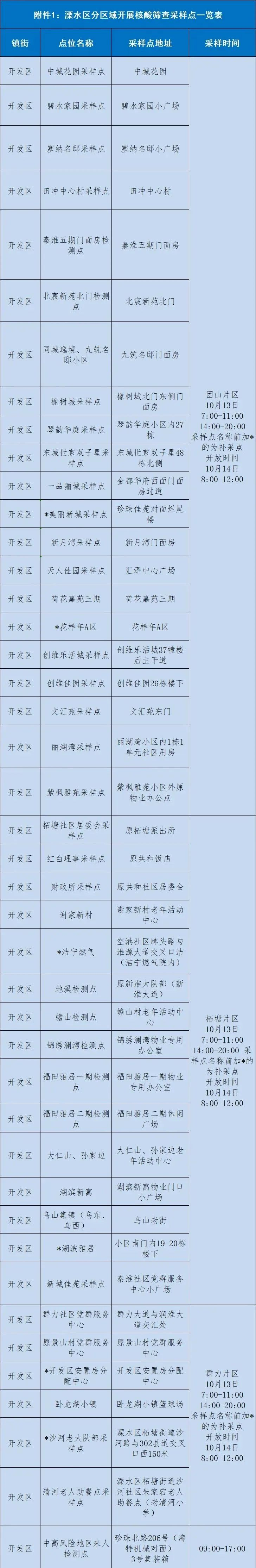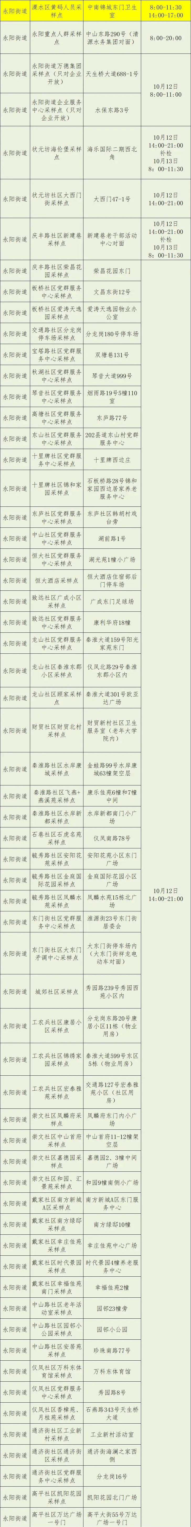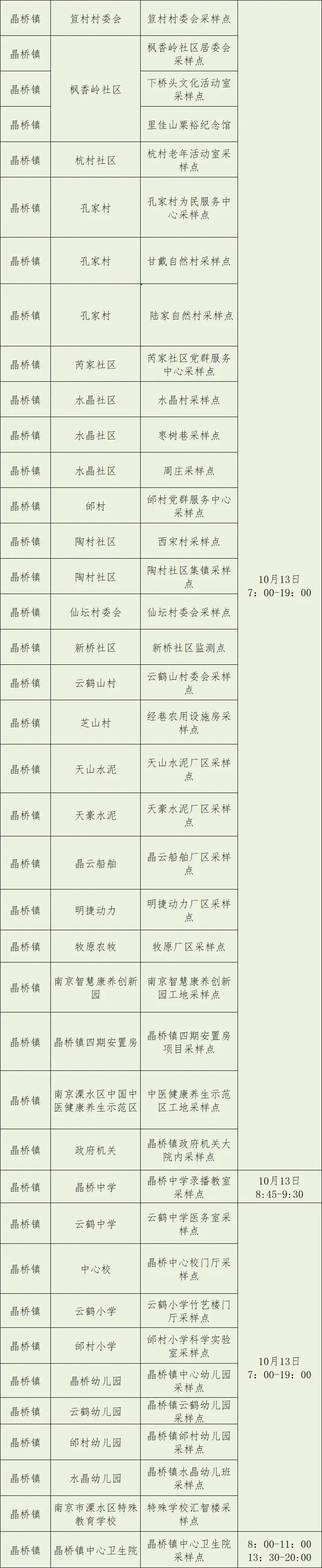 10月12日至13日南京溧水区规模性核酸检测安排+采样点位