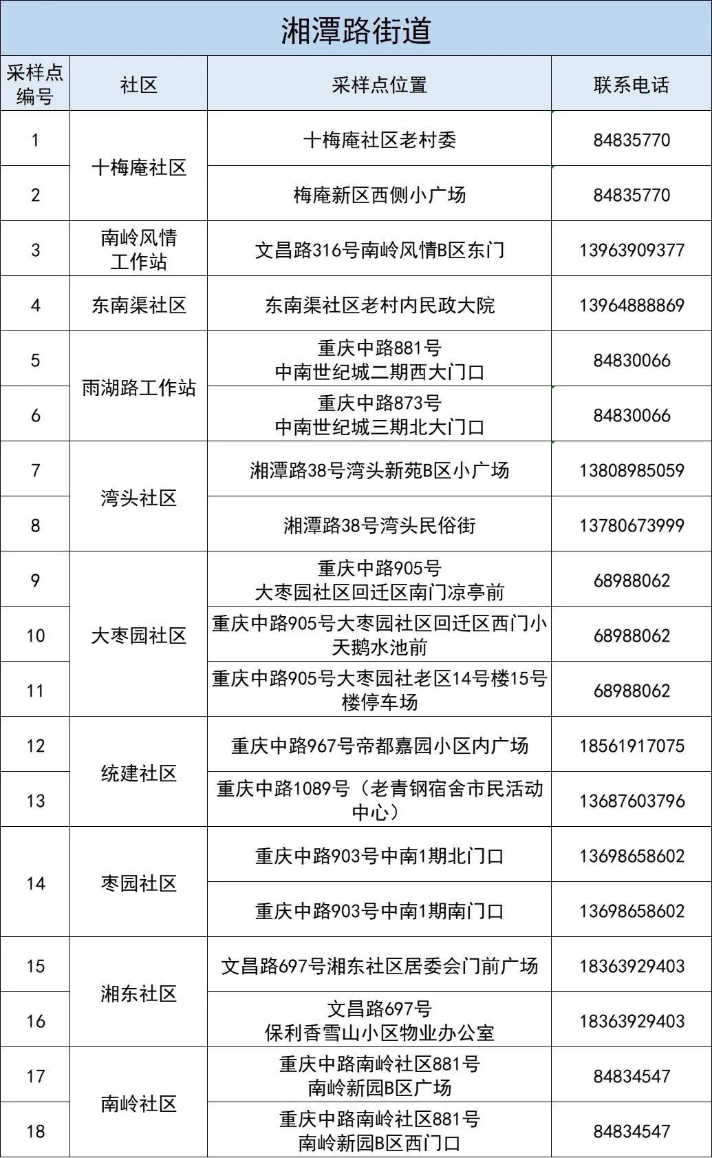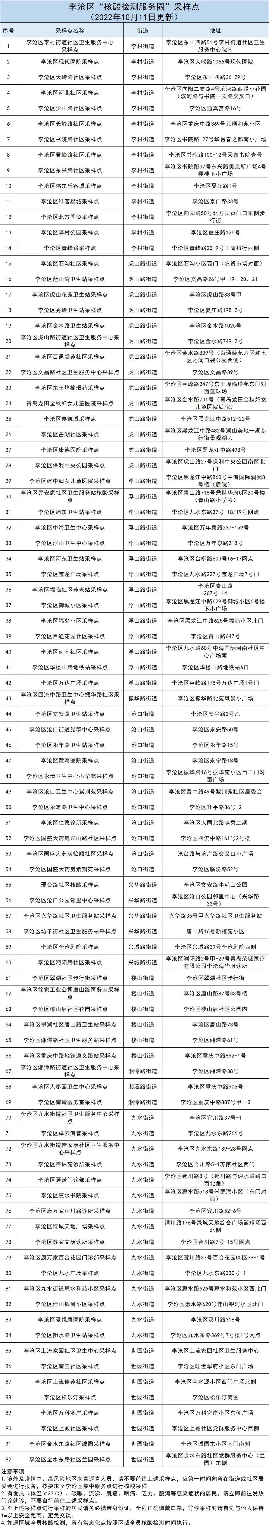 李沧区“核酸检测服务圈”采样点详情见本通告下方。