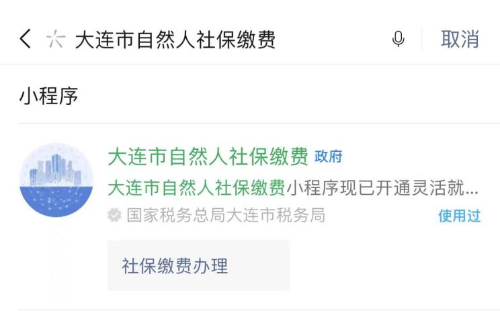 (一)微信扫描二维码或者微信搜索“大连市自然人社保缴费”小程序。
