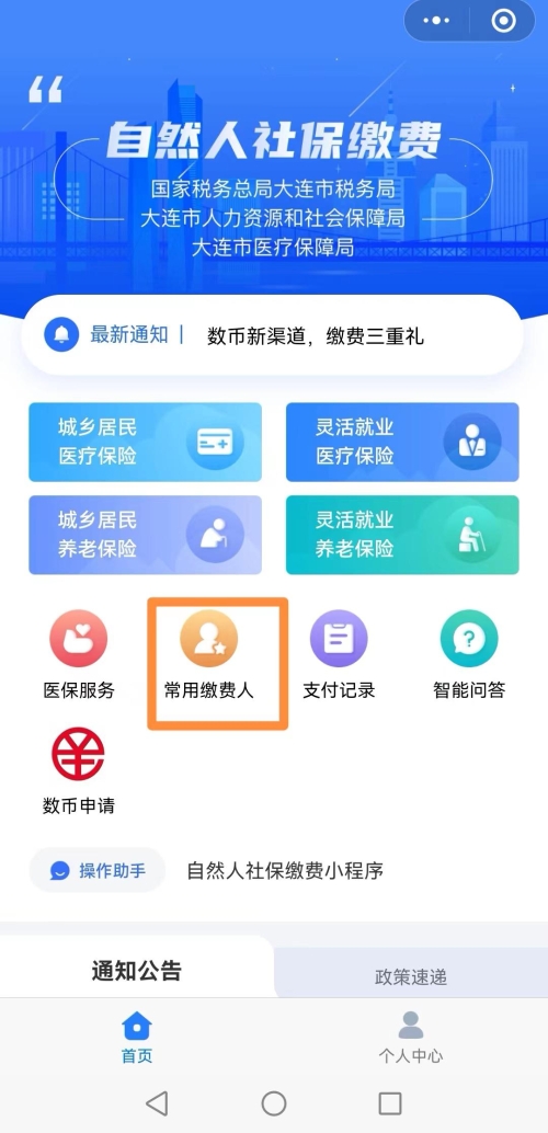 使用微信小程序“大连市自然人社保缴费”自助缴费。