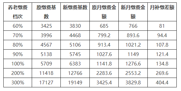 (一)对于2022年度已经缴纳过费款的缴费人,补缴金额计算规则为:缴费档次对应的“(新月缴费额-旧月缴费额)*已经缴费月份”,每缴纳过一个月费款即产生一条差额数据。