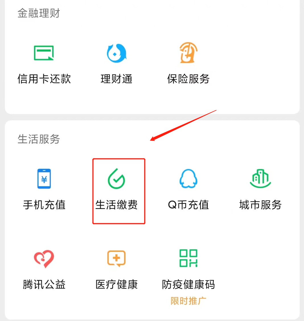 第二步:在生活服务中点击【生活缴费】