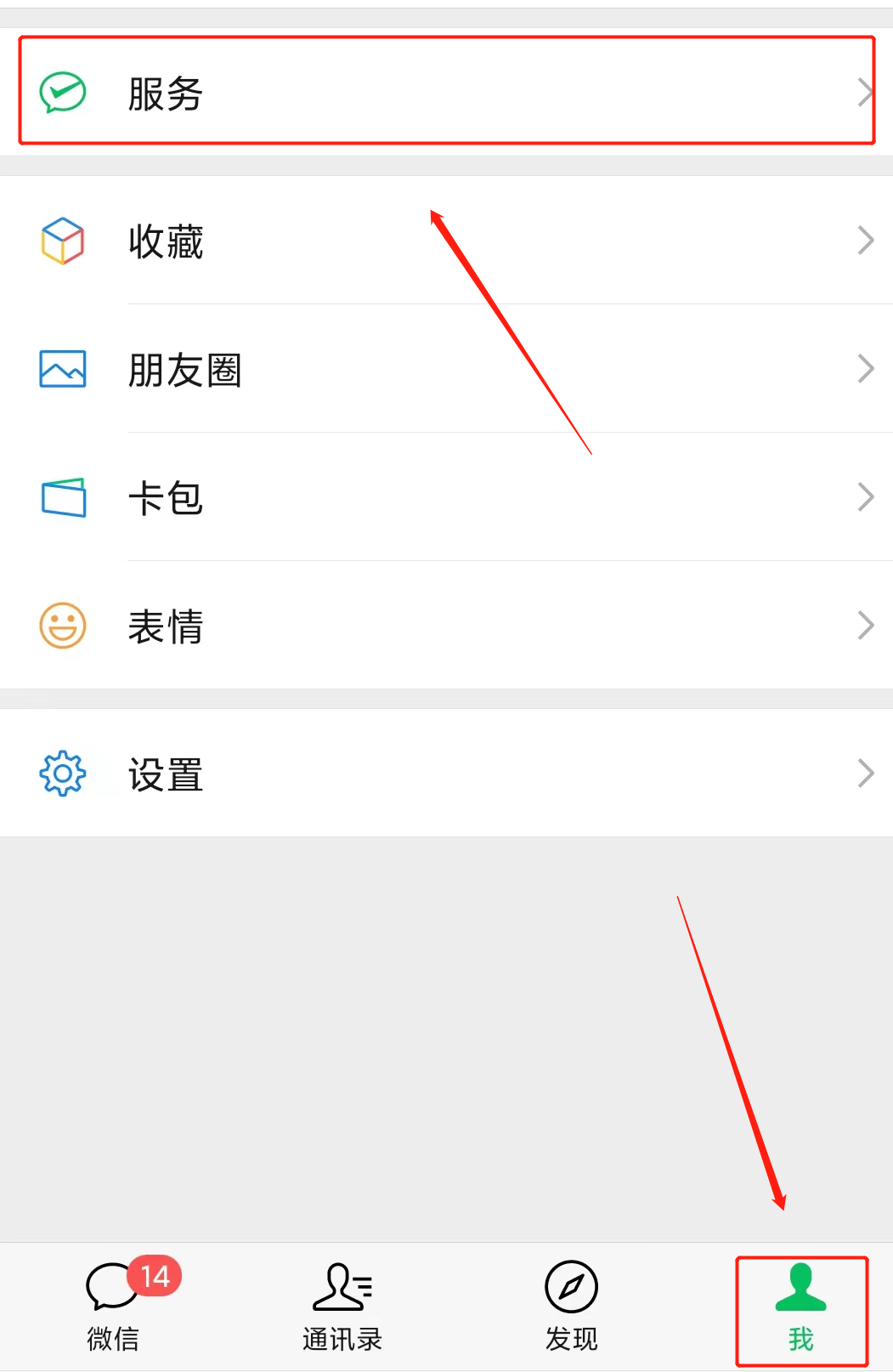 第一步:打开微信,点击【我】-【服务】