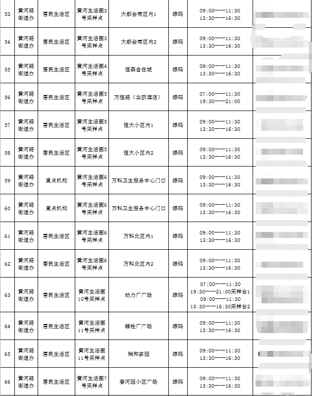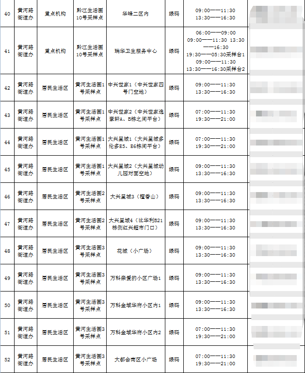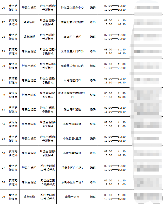 一、贵阳市花溪区黄河路街道核酸检测便利化采样点及时间