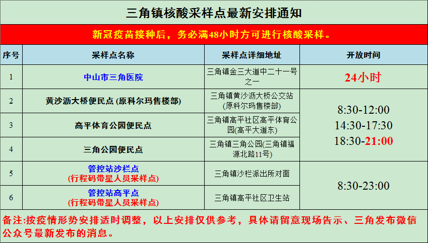 中山三角镇春节核酸检测点(中山区核酸检测点)