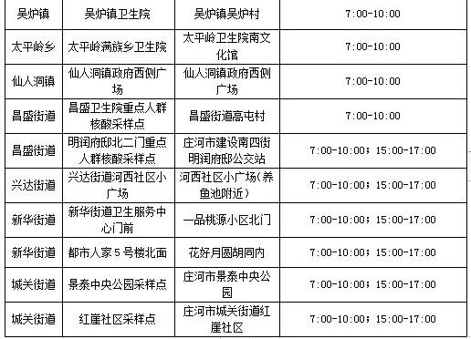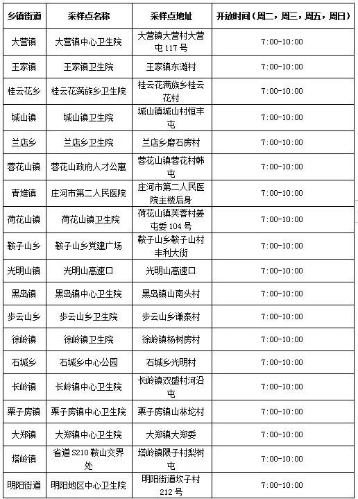 庄河市重点人群核酸采样点信息表