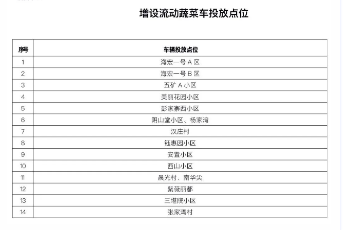 为全力做好群众基本生活物资供应,保障广大群众居家工作生活期间就近、就便购买基本生活物资,经区指挥部研究决定,辖区增设便利店(菜铺)19家,增加流动蔬菜车投放点位14个,前期公布的物资保障点持续供应。