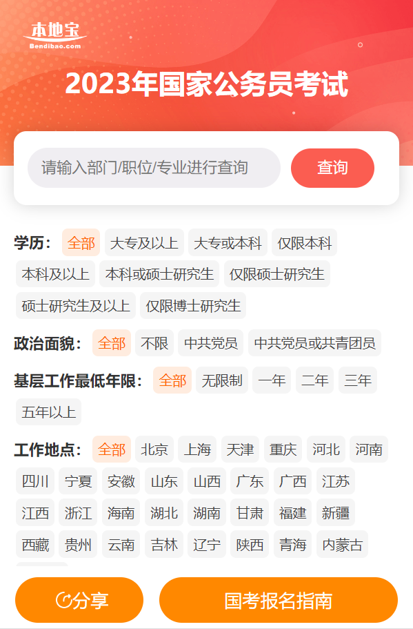 2023年国考职位表筛选查询系统:点此进入