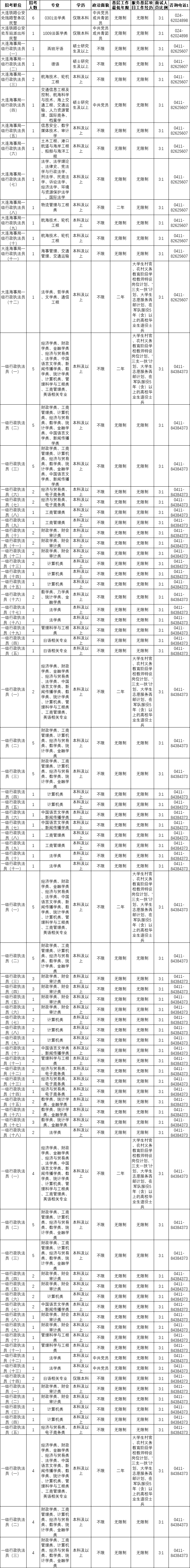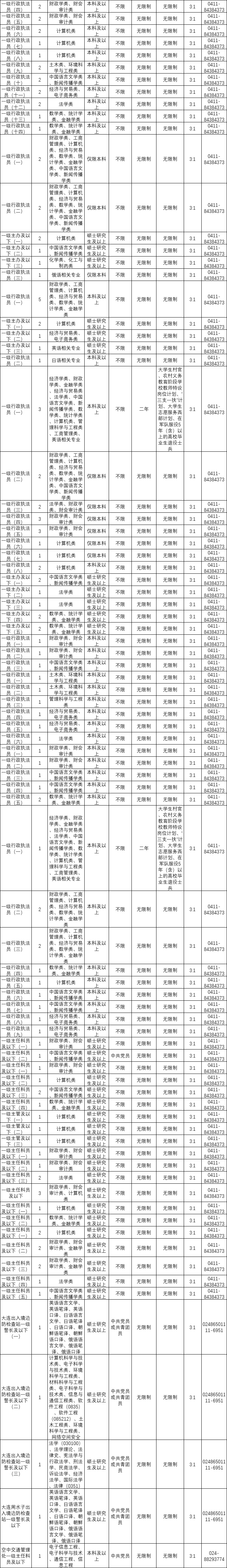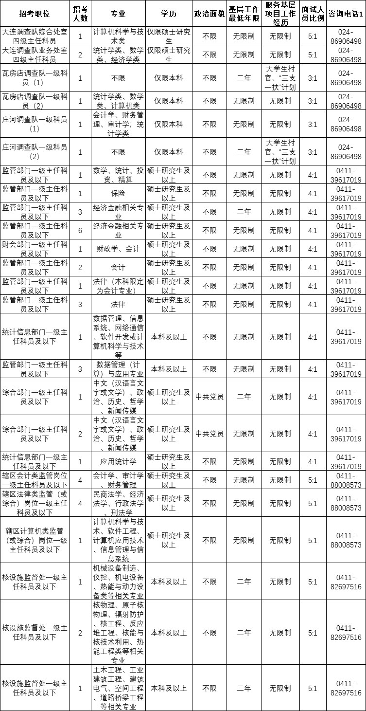 大连2023年国考公务员岗位表:
