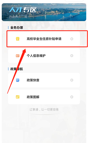 已注册的高校毕业生登录大连人才网https://www.dl-rc.com 、“大连人才”微信公众号、“大连人才”微信/支付宝小程序、辽事通 应用程序 ,进入 “ 高校毕业生住房补贴 ” 模块,自动弹出办理须知,包括:办理条件和支持政策说明;授权查阅户籍、社保和学信网信息。高校毕业生点击同意后,提交以下材料: