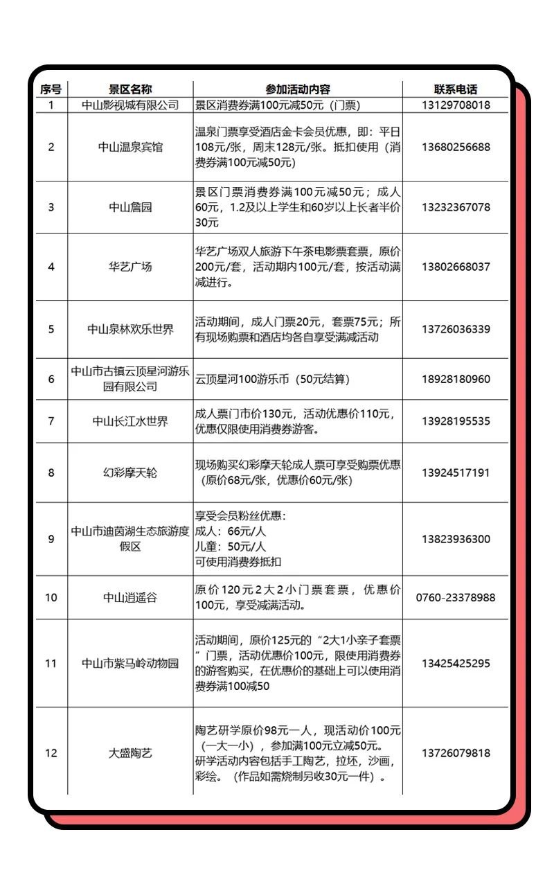 2021文旅中山“暑期趣中山”文旅消费券使用门店