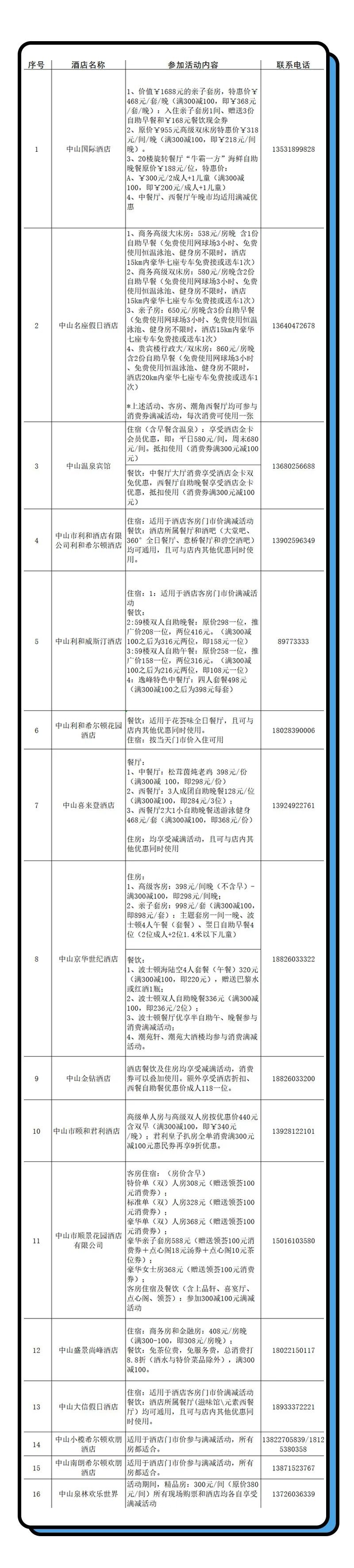 2021暑期趣中山消费券哪些酒店可以用
