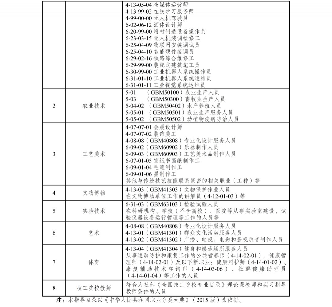 天津市专业技术职称系列与技能职业(工种)对应指导目录(2022版)