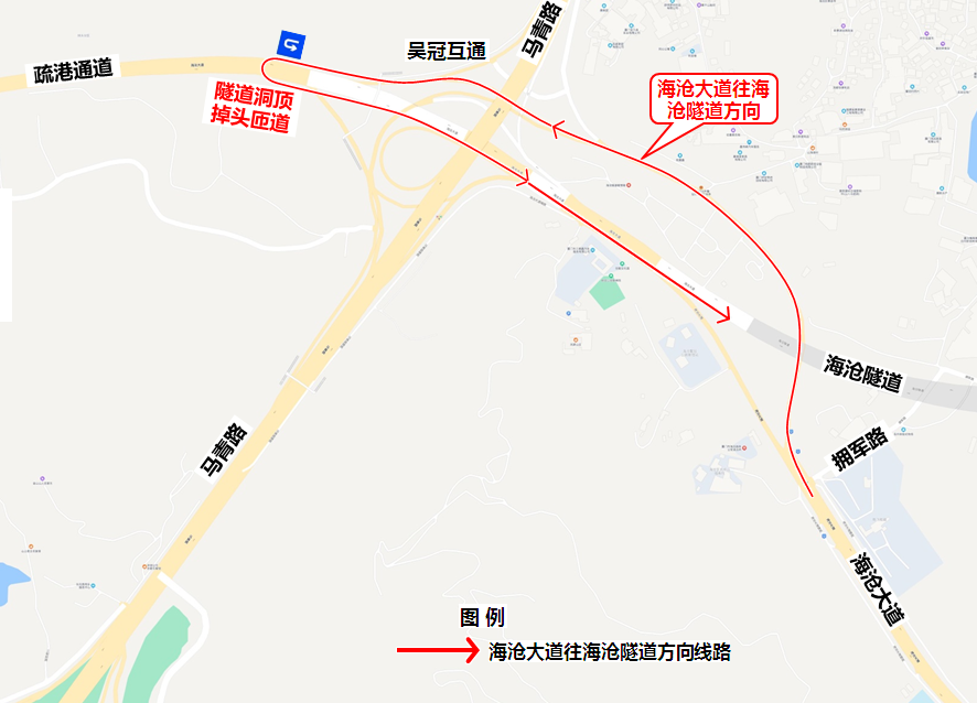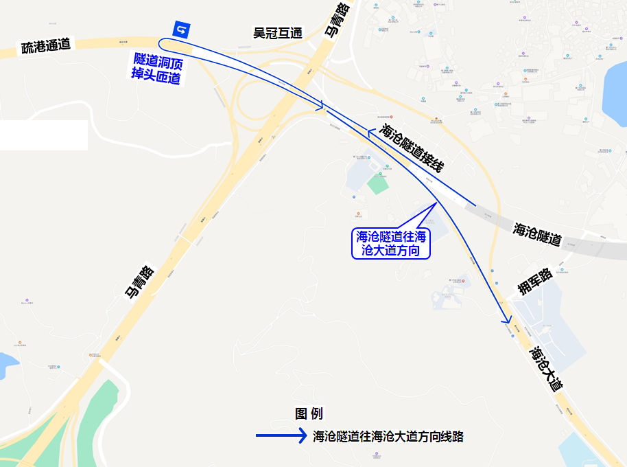 海沧生活区进岛车辆可通过海沧大道、掉头匝道、海沧隧道接线驶入海沧隧道进岛。