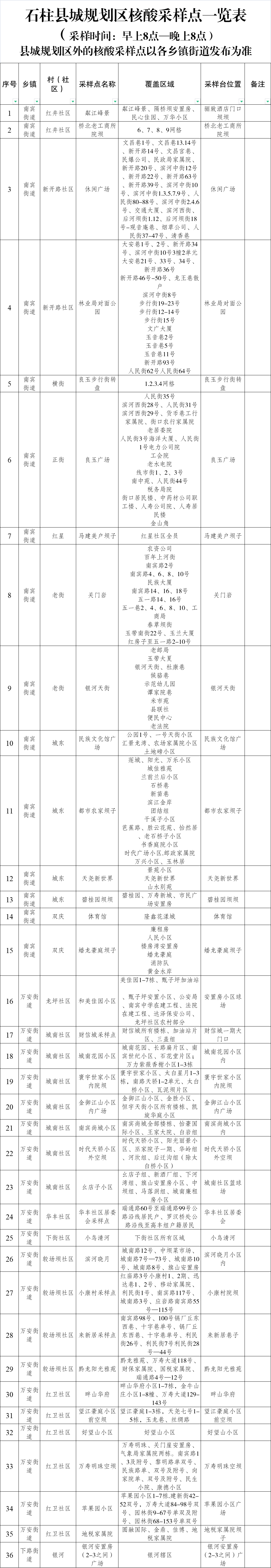 10月28日至29日石柱在全县范围内开展社会面核酸筛查