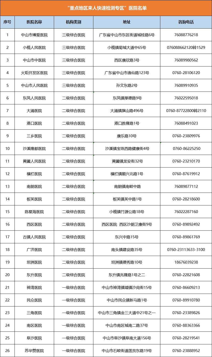 中山重点人群免费核酸采样点汇总(中山重点人群免费核酸采样点汇总图)