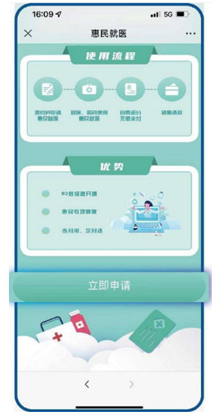 第一步:进入“惠民就医”界面—点击底部“立即申请”;