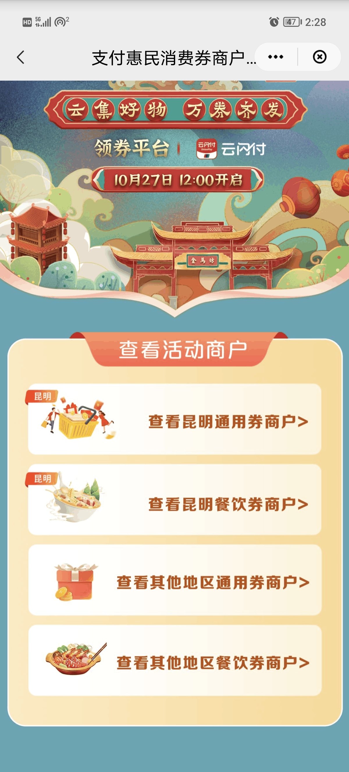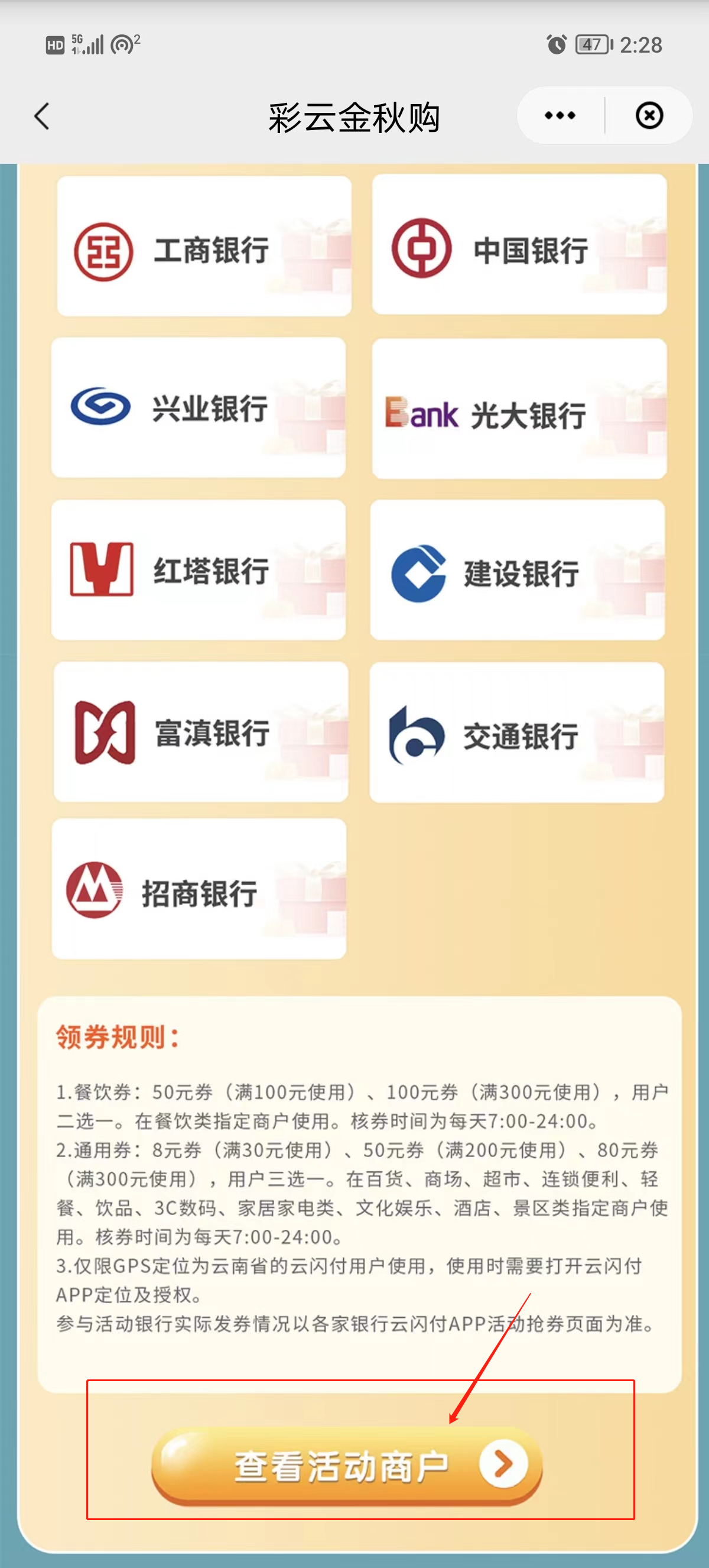 2022云南第五期支付惠民消费券活动商户怎么查询?