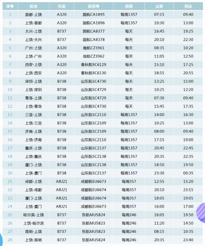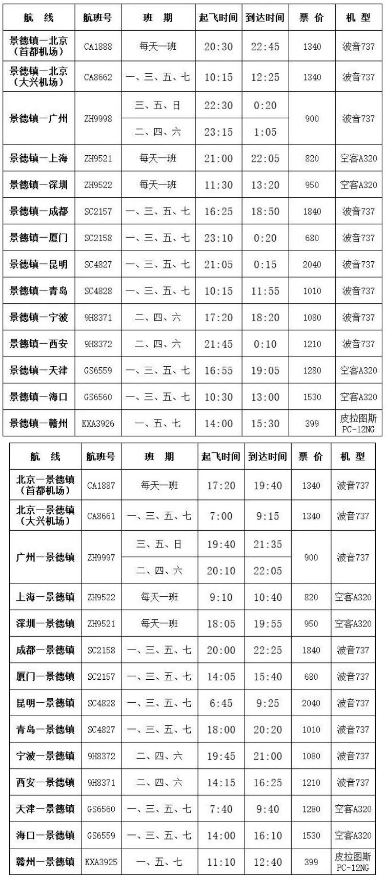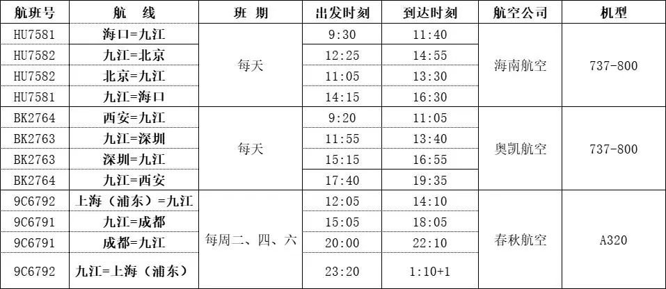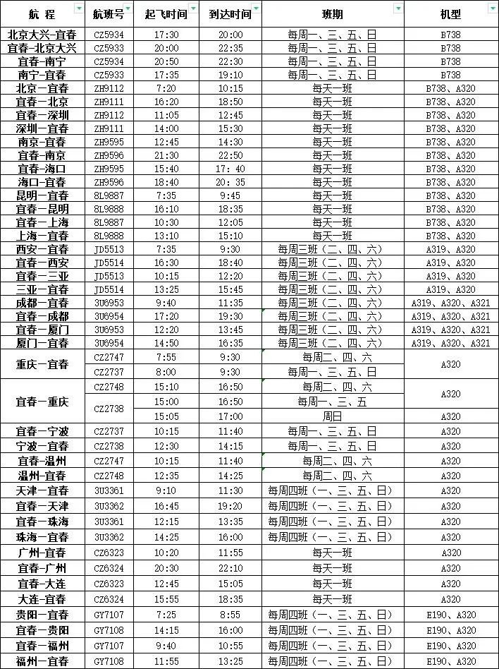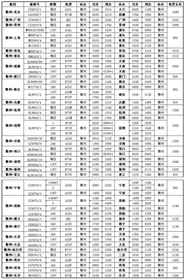 江西各机场航班时刻表汇总(江西航空所有航班)