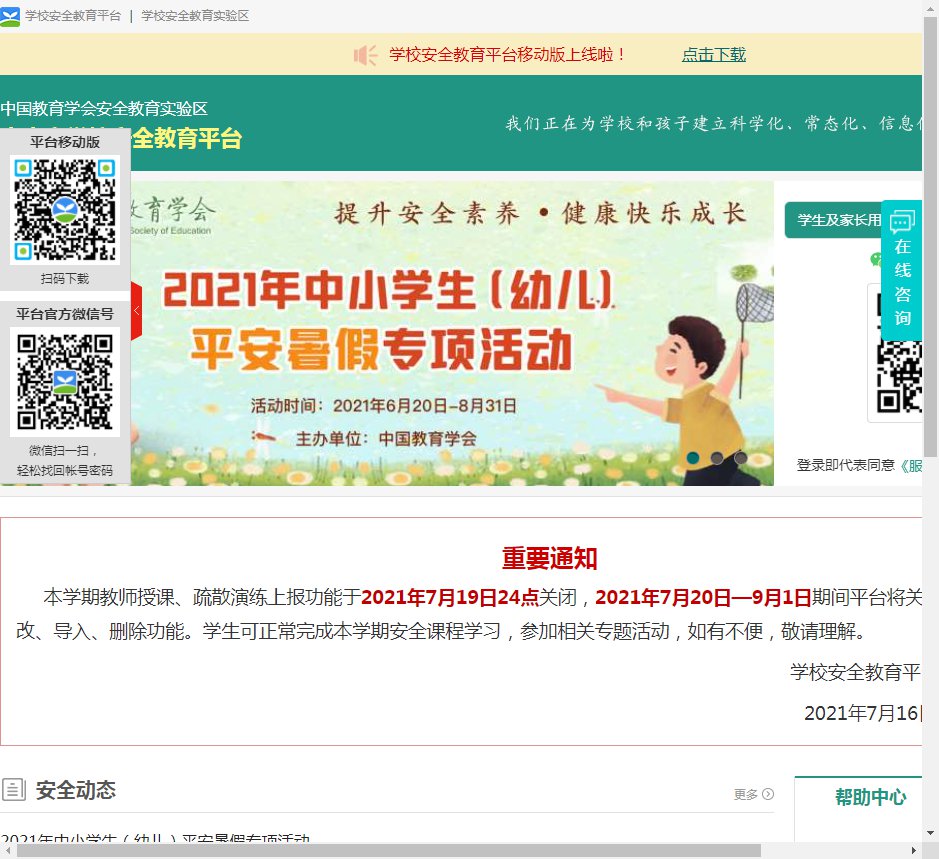 2021年暑假将至,学生安全事故易发、多发。为进一步增强全市学生及幼儿的安全防范意识,提升安全素养,同时强化家长在暑假期间对孩子的安全教育和监护责任,做好暑假的安全监护,家校联动,确保学生度过一个安全、快乐、充实的暑假,根据有关部署,在学校安全教育平台开展2021年中小学生(幼儿)“平安暑假”专项活动,建议家长在百忙之中,抽出时间,督促孩子或与孩子一起学习暑假安全知识,具体参与方式如下: