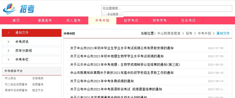 2021中山中考成绩查询网站入口(2021中山市中考成绩查询)
