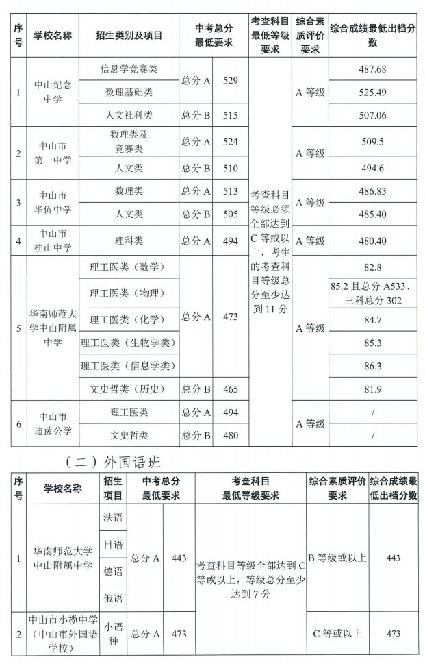 2021中山中考录取分数线最新消息 2021年中山市中考录取分数线最新消息