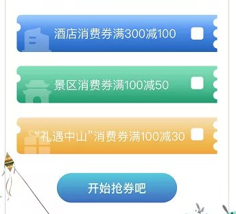 消费券分为酒店消费券、景区消费券和“礼遇中山”旅游手信消费券