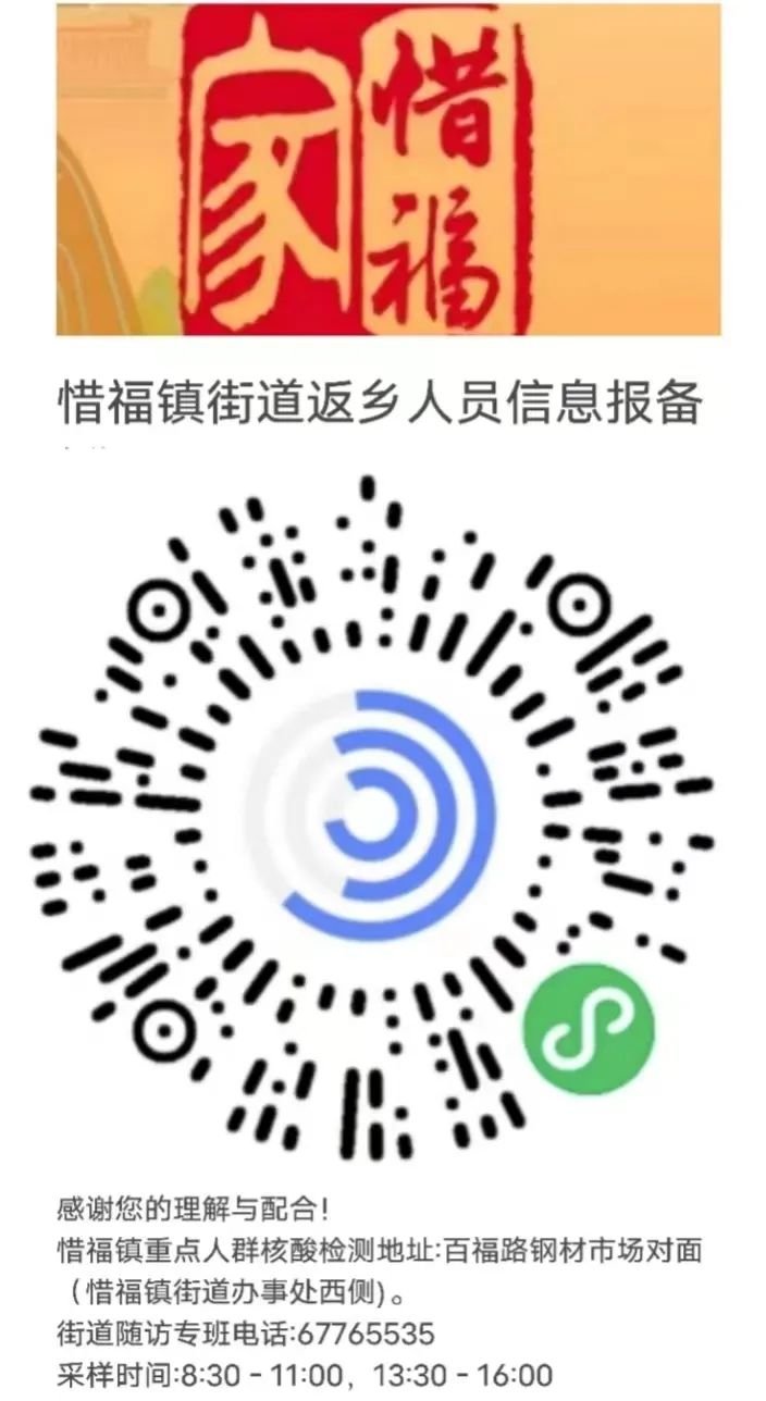 青岛市城阳区惜福镇街来惜返惜人员自主报备提醒