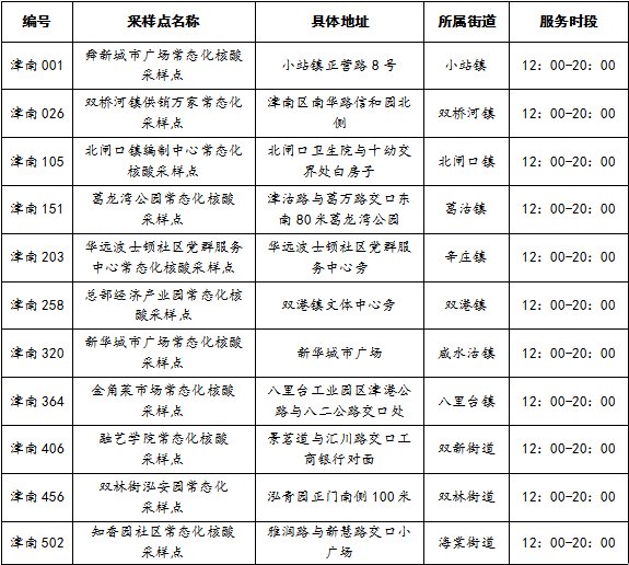 津南区10月31日常态化核酸检测点位开放情况一览表