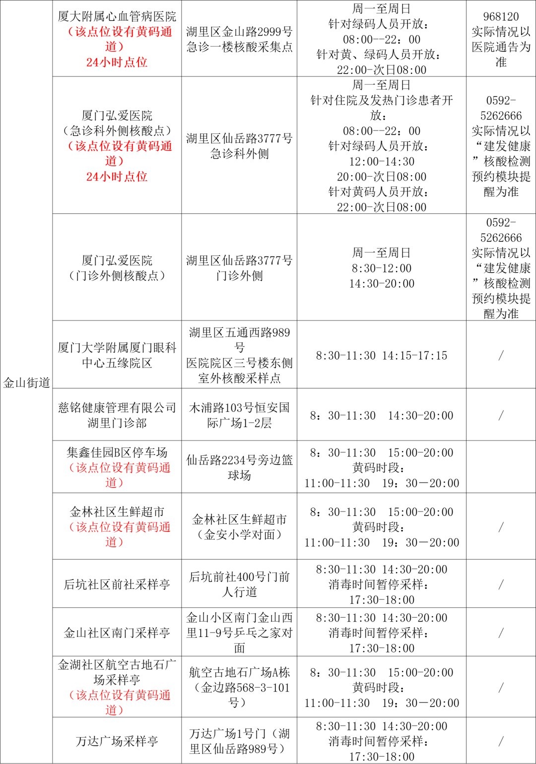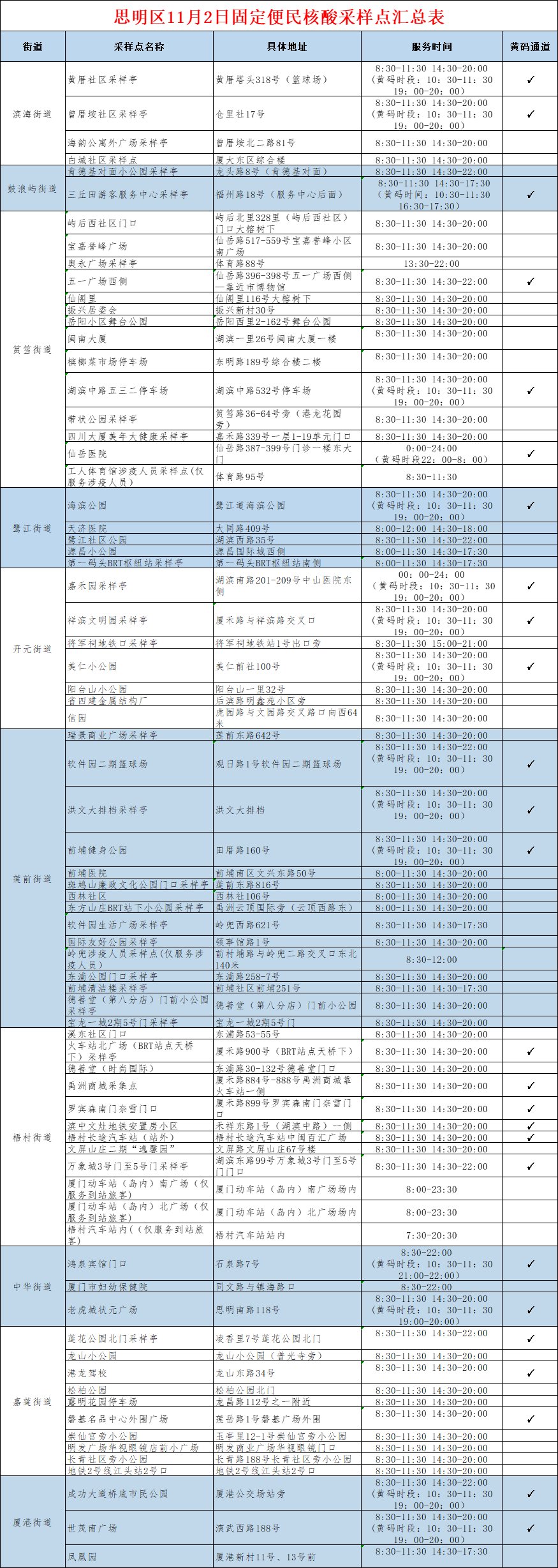 思明区(点击可看大图)采样时间为早上8:30-11:30,下午14:30-20:00。