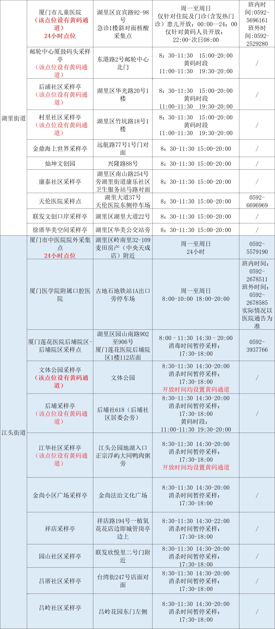 湖里区(点击可看大图)采样时间早上8:00-11:30,下午14:30-22:00,具体采样时间以下图为准。