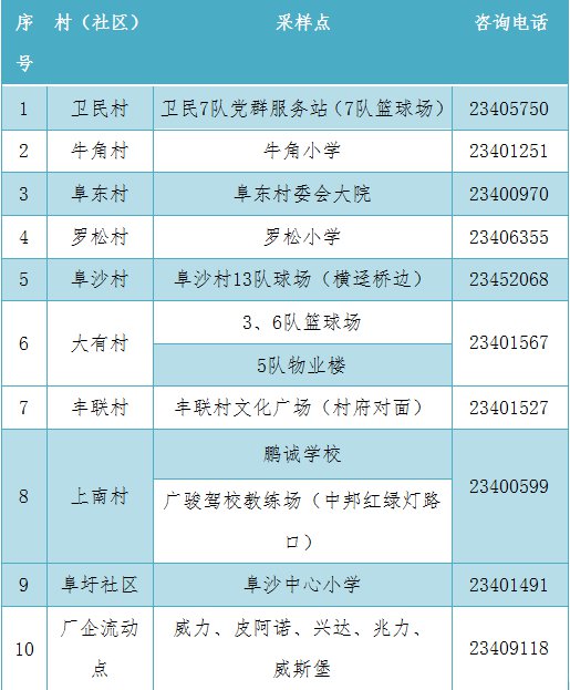 阜沙镇核酸采样点分布一览表