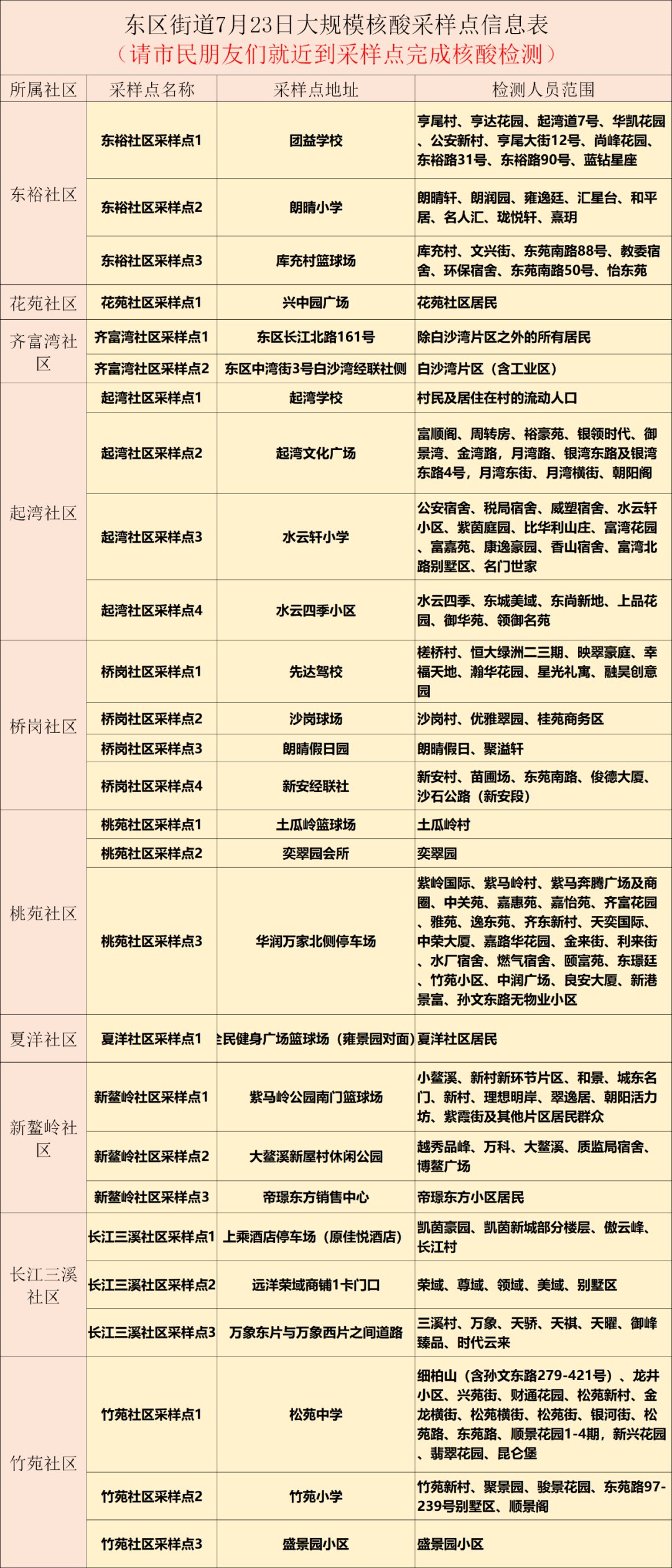 更新时间:7月22日根据中山市新冠肺炎疫情防控指挥部统一部署,经东区街道新冠肺炎疫情防控指挥部研究决定,我街道将于7月23日(7时至18时)开展大规模核酸检测工作。现将有关事项通知如下: