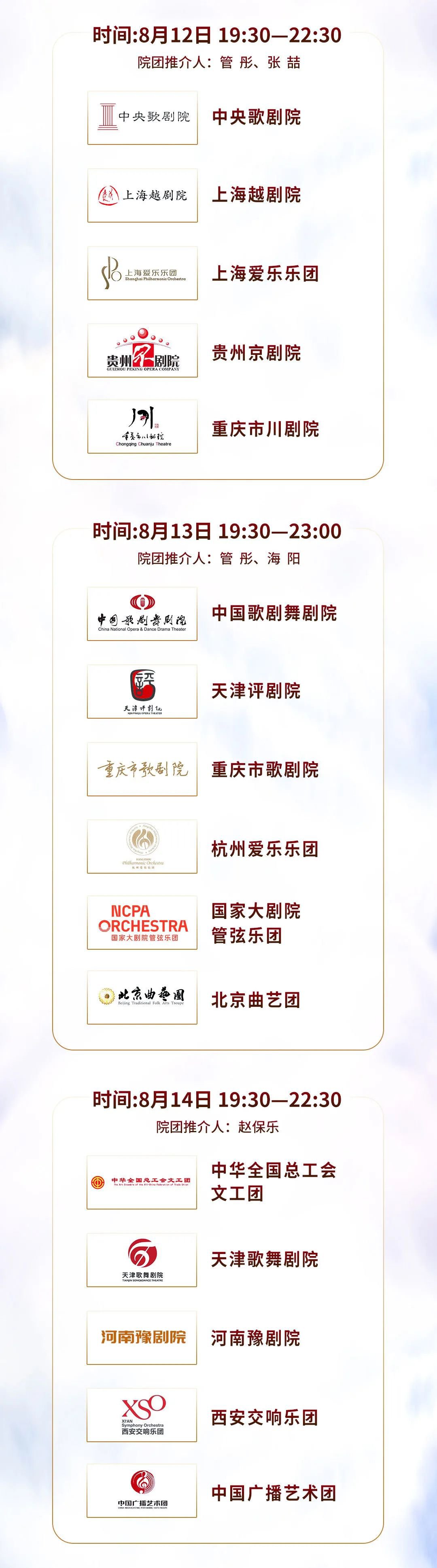 将荟集一线表演艺术家,齐聚“文艺瑰宝”倾情奉献一场场流光溢彩的艺术演出。各顶级院团“掌门人”也将亲临直播现场和网友亲密互动,一同聊文化、谈历史、说特色。