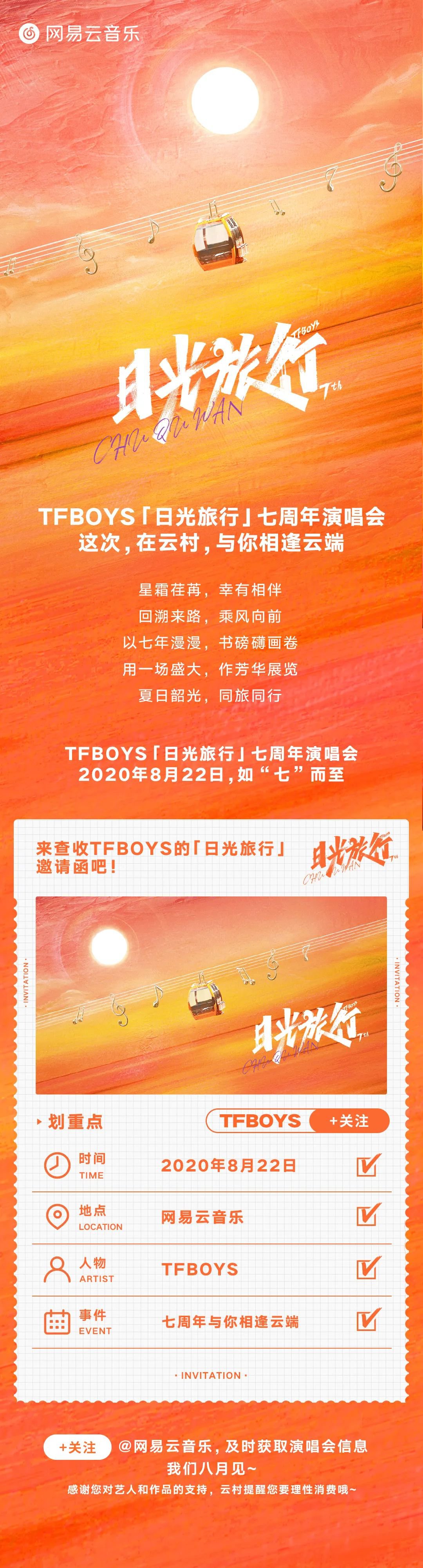 偶像组合TFBOYS终于在7月19日午间通过官方微博宣布七周年演唱会的具体安排,并将于8月22日上线网易云音乐。